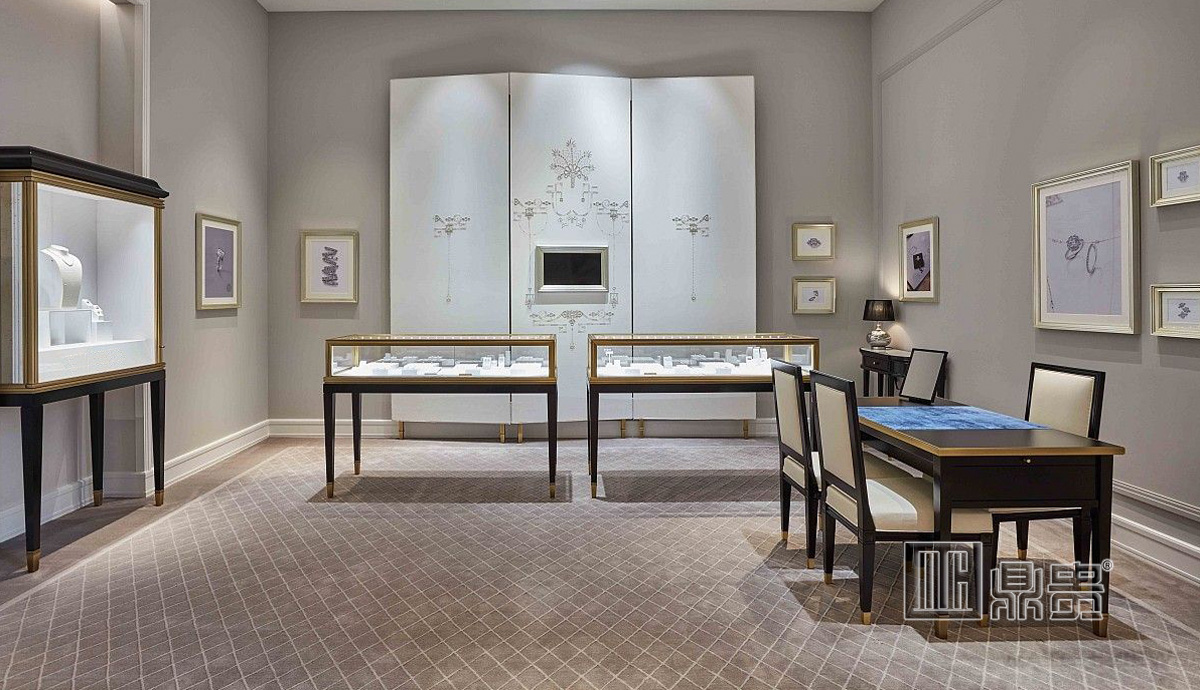 此项目为高端珠宝展示空间,客户想要打造成专属服务于中高端消费人群的商业空间。所以经过我们分析这类人群消费水平比较高,喜欢有档次、有品位的商品,但同时也追求个性化。我们设计的时候运用黑色钢琴烤漆和不锈钢结合,整个空间显得沉稳、大气。八边形展示柜的设计不仅大胆更具个性,在细节上运用了多层次的装饰线条,从视觉上即整体又而不失细节。从而达到从店铺空间与消费者之间的契合。