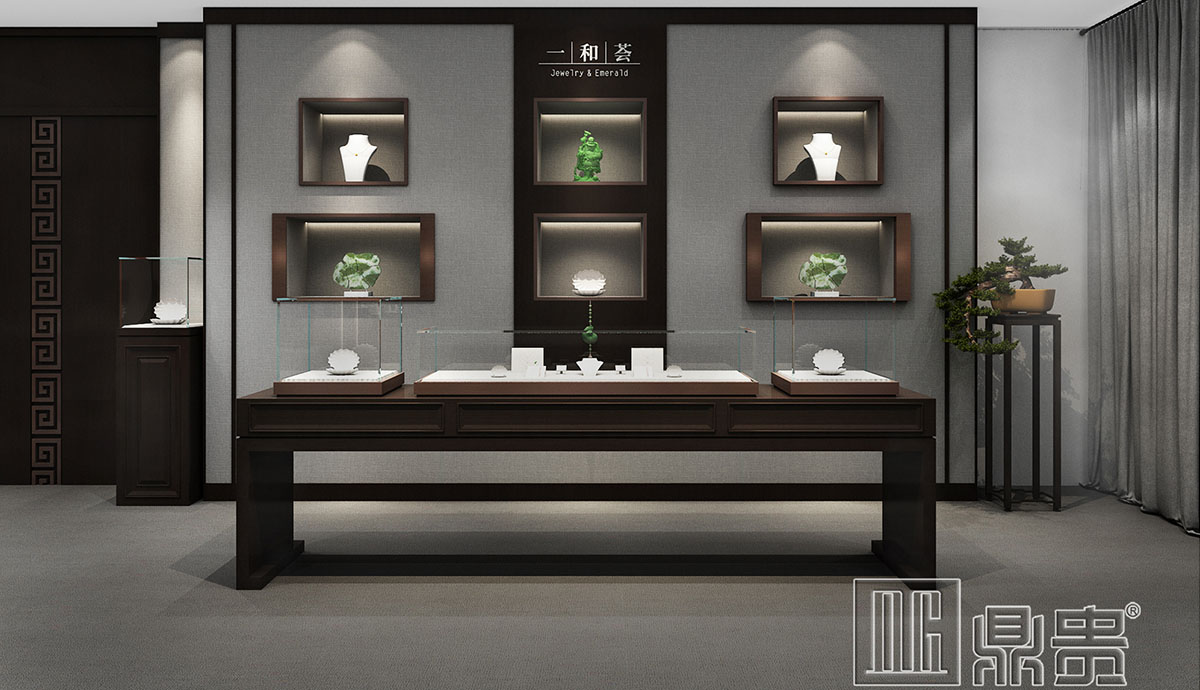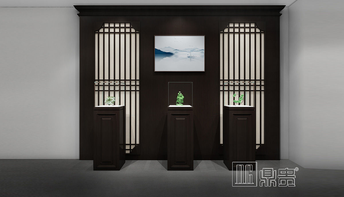 本商业空间的主要产品以玉器为主的高端珠宝,客户本身也很喜欢中式的禅意空间。设计时我们的目的就是要打造自然亲和,又不失东方神韵,置身其中,使身心舒畅,明媚清新,意韵悠然的禅意空间,让人细细欣赏着独一无二的珠宝玉器。在这个空间设计中运用了简素的原木色和白色搭配、让这个空间更具有禅宗的简素精神。在中国,禅意空间天人合一的思想由来已久,《道德经》说:人法地、地法天、天法道、道法自然,所以设计一个抽象的天人合一形式的柜台融入到这个空间、吸引人气,从而使消费者在空间中增加购买欲望。顶部挂上一幅极具禅意的水墨画,面朝窗外仿佛置身最高之处、给人无限遐想。