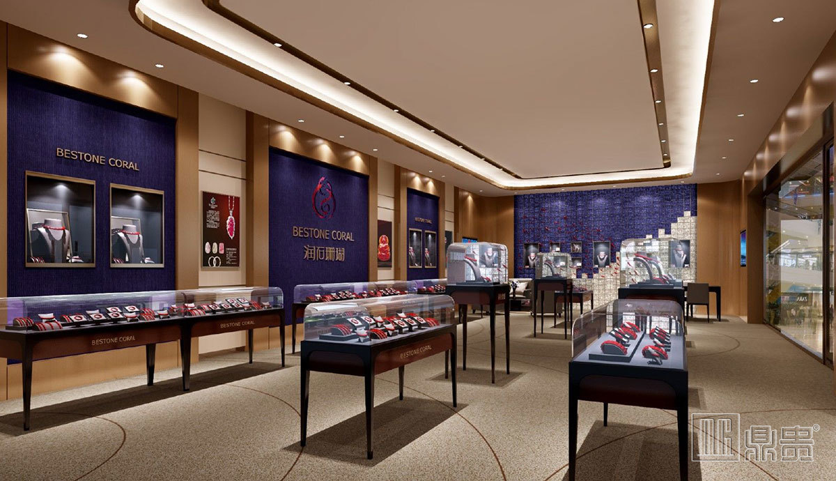 每一个作品都有属与他独一无二的“灵魂”,我们在打造这个空间的环境是时候,考虑更多的是把珊瑚的气质,从颜色搭配上有大海的蓝色和珊瑚的红色搭配,造型上用的更多的是流动的造型,此空间似乎让消费者进入神秘莫测的大海里正在寻找属于自己的红珊瑚!