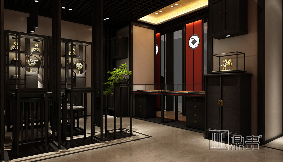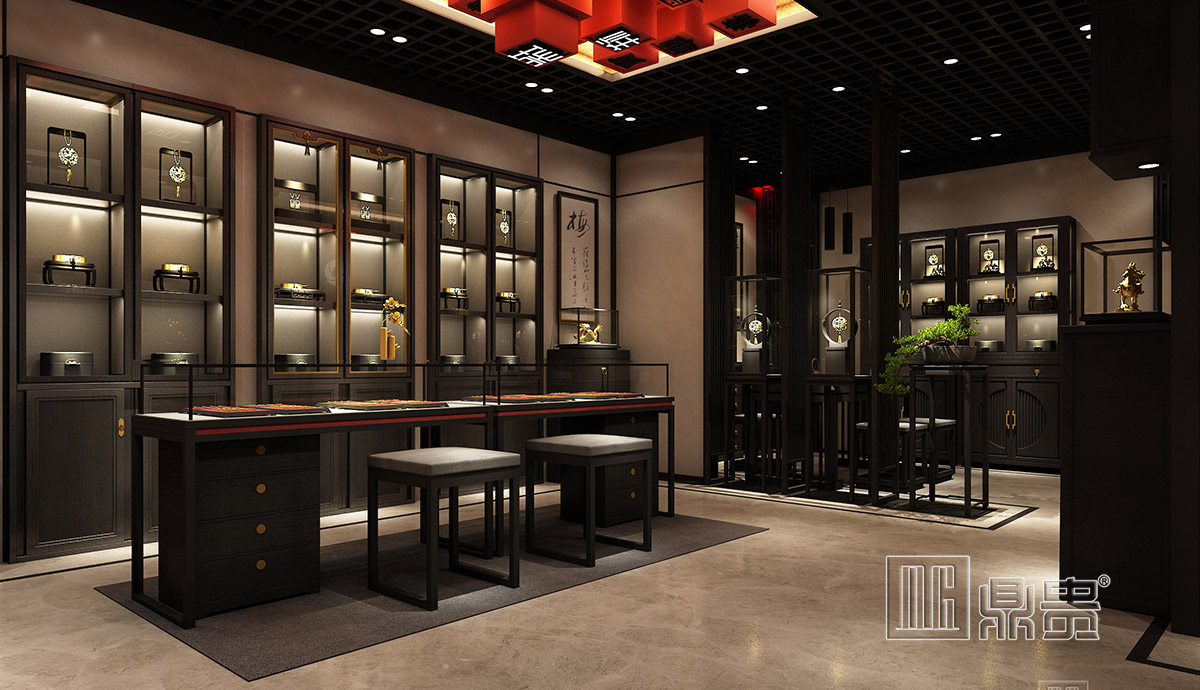 此项目为奢华黄金店铺,在人流动线的设计上,运用了回环式动线设计,避免消费者走重复的路影响消费者的购物体验,同时又能让消费者一次性欣赏完店内全部的产品。背柜的设计上采用亮光烤漆搭配木纹烤漆,高档奢华,顶部打灯与柜内藏灯,让昂贵奢华的珠宝产品更显高端。整个空间规划明朗,不显拥挤,这样显得简约大方,同时也给顾客创造一个舒适的购物空间环境。